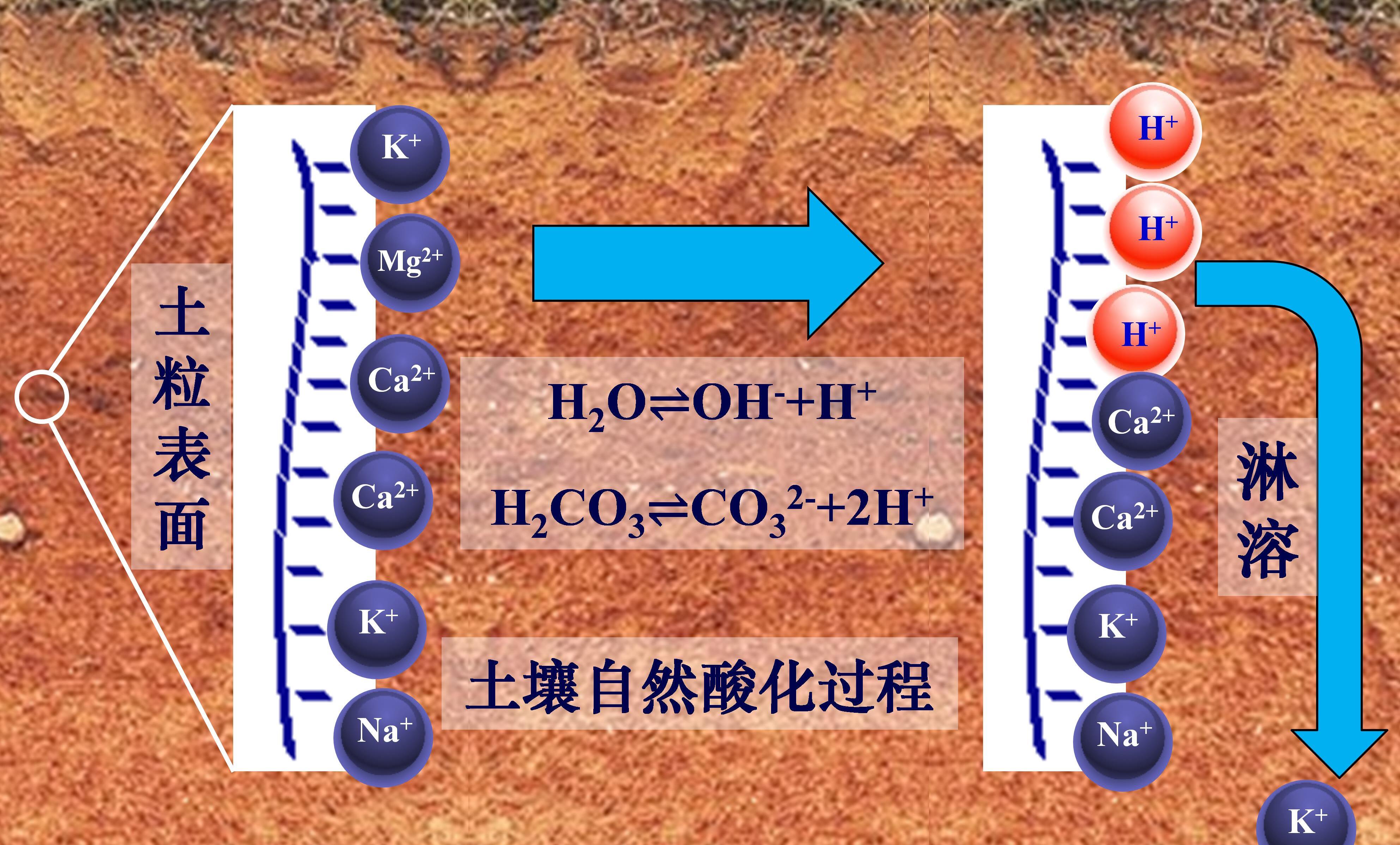 土壤中的盐基阳离子指正二价的钙和镁及正一价的钾和钠(Ca2+、Mg2+、K+、Na+),它们大部分通过静电吸引作用吸附于土壤固相表面,这也使得带负电荷的土壤表面保持电中性状态,这部分盐基阳离子称为交换性盐基阳离子。小部分盐基阳离子存在于土壤溶液中,