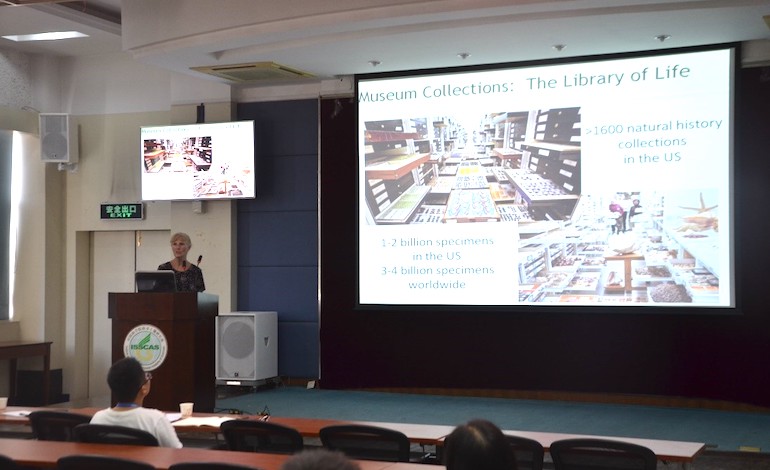Pamela Soltis教授在报告中强调了标本的重要性并提出这些丰富的馆藏标本实际上就是巨大的基因库,是地球生物多样性研究的重要资源。同时展示了美国在此领域的核心平台iDigBio网站以及中国数字植物标本馆(CVH)的基本情况,表明标本数据可以与基因组学、进化系统学以及生物地理学等其它数据相结合,产出很多有价值的研究成果。而Douglas E. Soltis教授则通过对植物系统发育的研究工作,阐述了构建系统发育树(生命之树)的必要性和可行性,表明了系统发育树在理解、揭示甚至是预测植物进化、多样性变化以及物种分布中的重要意义。同时探讨了“生命之树”建立的可能性和目前面临的问题。在报告结束后的研讨中,参会者们就报告中感兴趣的内容以及科研工作中的疑惑和问题与两位教授进行了交流和讨论。会后,Soltis教授夫妇一行参观了南京土壤研究所的土壤标本馆,对南京土壤研究所在土壤资源收集、保存和分类等方面的工作给予了充分赞赏。