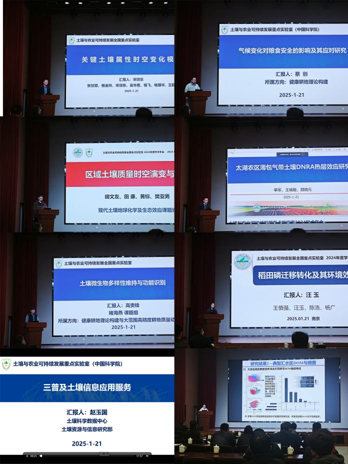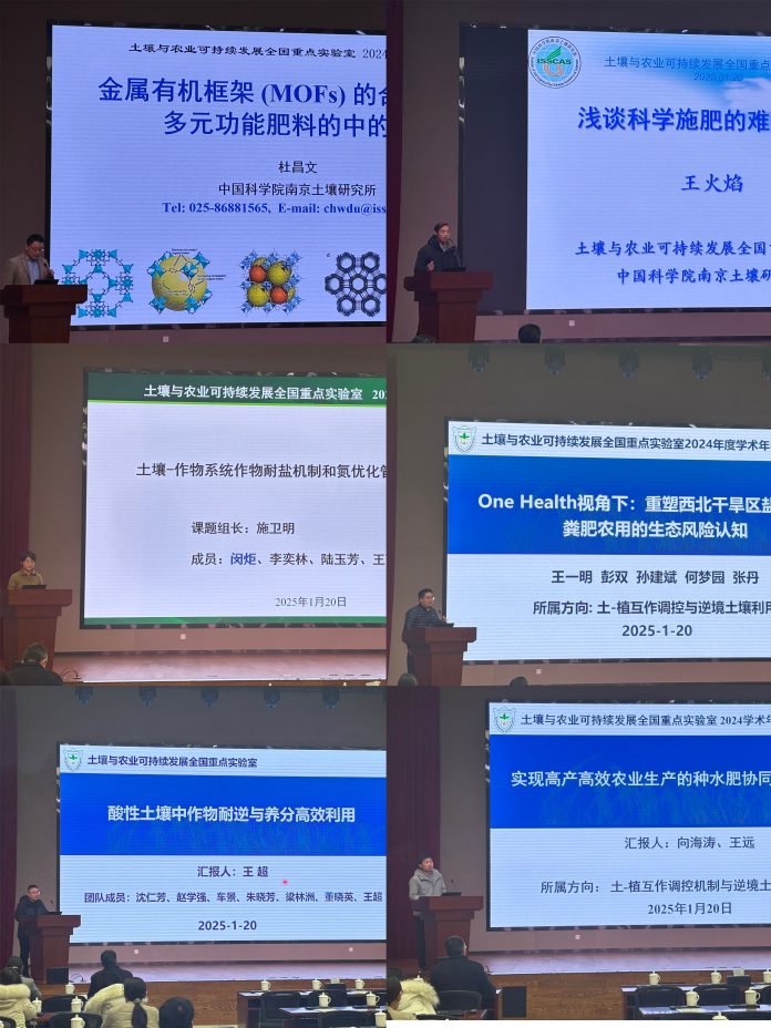 2025年1月20日至21日,土壤与农业可持续发展全国重点实验室2024年度学术年会在中国科学院南京土壤研究所多功能厅召开。南京农业大学沈其荣院士,中国科学院南京地理与湖泊研究所所长张甘霖,中国科学院南京土壤研究所所长沈仁芳、副所长颜晓元、纪委书记盖永华以及实验室师生出席会议。
