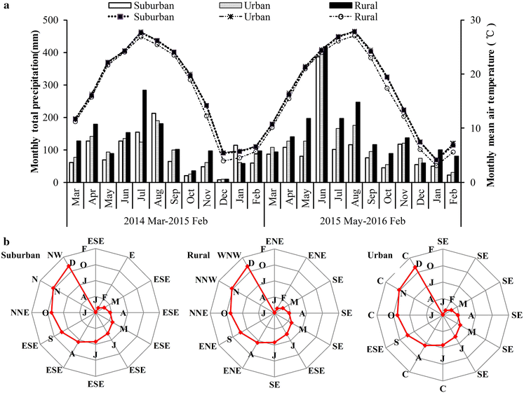 Large amounts of atmospheric N deposition cause negative effects on ecosystems. Effective mitigation strategies require the sources of N deposition to be identified and the contributions from individual sources to be quantified. Determination of the isotopic composition represents a useful approach in source apportionment. In this study, the δ15N-NHx of wet and dry atmospheric deposition and the main NH3 emission sources were analyzed at an urban, a suburban and a rural site in the Taihu Lake region of China. The 2-year average δ15N- NH+4NH4+ of precipitation was − 3.0 ± 2.3, − 3.1 ± 2.8 and − 0.5 ± 2.8‰ for the urban, suburban and rural sites, respectively. These values were much lower than the corresponding values for particulate NH+4NH4+ (15.9, 15.2 and 14.3‰ at the urban, suburban and rural sites, respectively), and much higher than those of gaseous δ15N-NH3 (− 16.7, − 18.2 and − 17.4‰ at the urban, suburban and rural sites, respectively). The δ15N-NH3 of NH3 from the main emission sources ranged from − 30.8 to − 3.3‰ for volatilized fertilizer, from − 35.1 to − 10.5‰ for emissions from a pig farm, and − 24.7 to − 11.3‰ for emissions from a dairy farm. Temporal variations of deposition δ15N-NHx indicated that δ15N-NHx values were lower in summer and autumn, but higher in winter and spring for both precipitation NH+4NH4+ -N and gaseous NH3-N. Weather conditions such as temperature and precipitation significantly influenced the spatial and temporal distribution of isotope values of the deposition. Analysis of δ15N-NHx in deposition and emission sources identified volatilized fertilizer and livestock wastes as the origins of both gaseous NH3-N and precipitation NH+4NH4+ -N over the region. A stable isotope mixing model estimated that volatilized fertilizer and animal excreta contributed more than 65% to precipitation NH+4NH4+ -N, more than 60% to particulate NH+4NH4+ -N, and more than 75% to gaseous NH3-N.