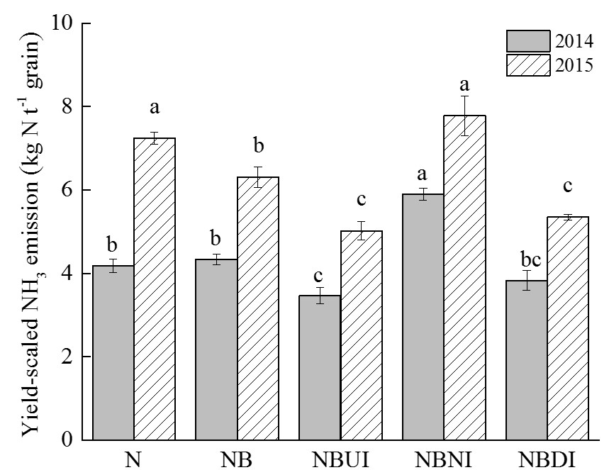 生物质炭和抑制剂对yield-scale NH3 volatilization的影响