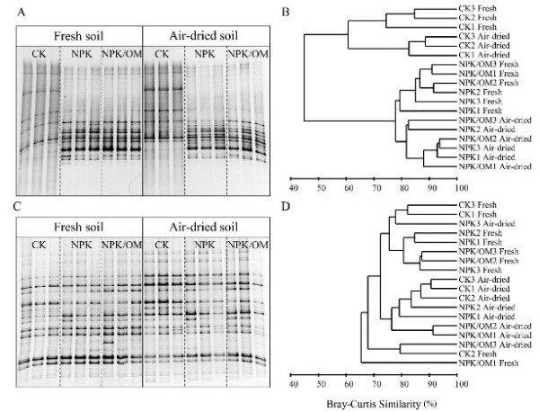 课题组依托中科院江苏常熟农田生态系统国家野外科学观测研究站,基于20余年的稻麦轮作野外观测平台,通过先进的分子生物学技术,发现与对照不施肥处理(CK)的新鲜土壤相比,22年长期施用化肥(NPK)或化肥配施有机肥(NPK/OM)显著改变了氨氧化细菌(AOB)的群落组成,但对氨氧化古菌(AOA)没有明显影响,阐明了长期施肥下细菌AOB驱动中性水稻土氮肥氧化的规律(Soil Sci Soc Am J . 2011. 75: 1431)。在此基础上,课题组将新鲜土壤风干,得到了一致规律,表明自然风干的土壤样品,也能很好地反映长期人为活动对氨氧化细菌AOB的影响规律(Biol Fert Soils. 2019. 55: 419)。这一成果也为美国、英国和意大利以及国内野外定位试验站土壤生物学样品保存策略提供了参考。